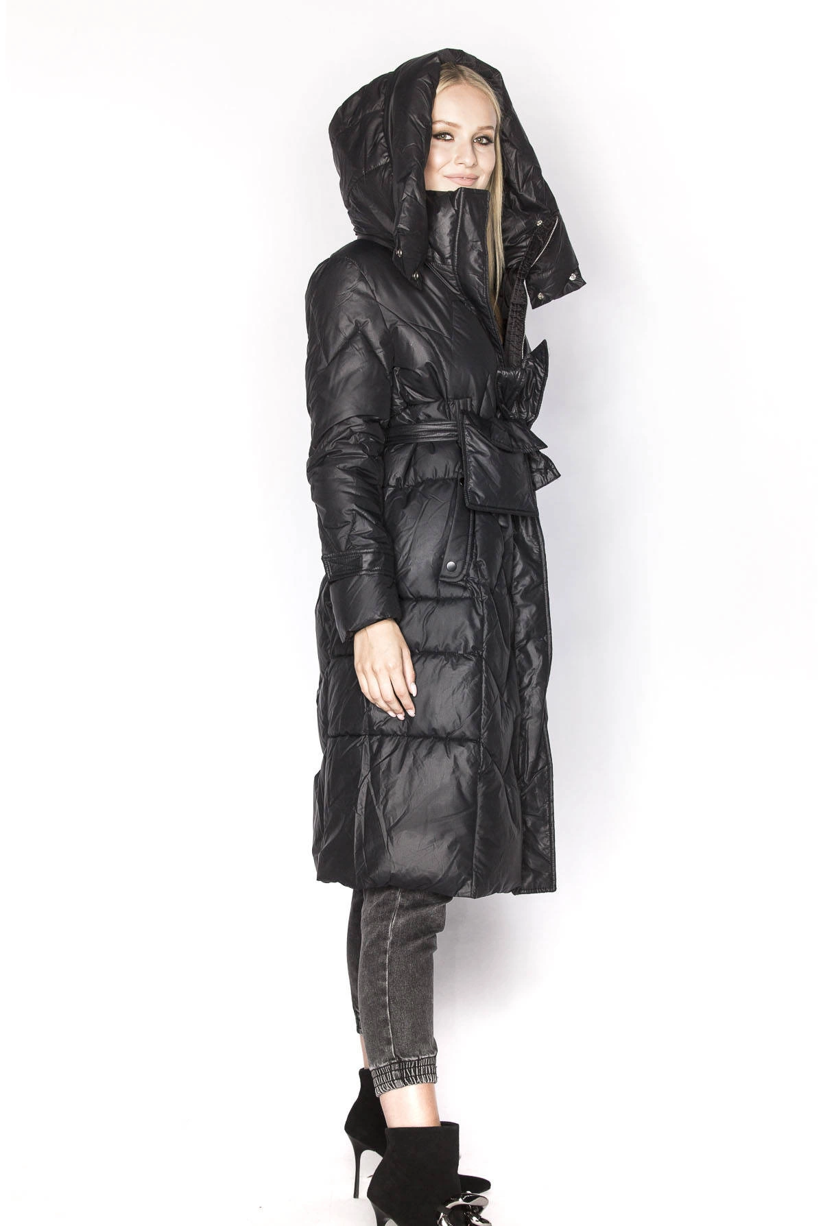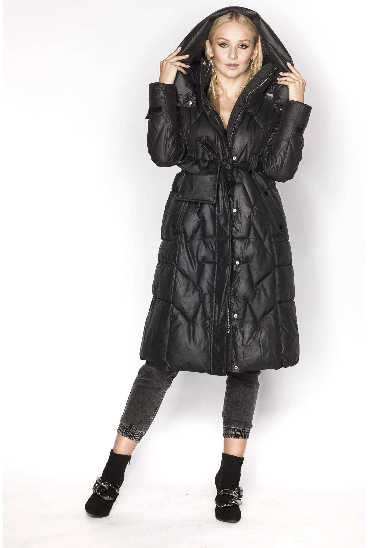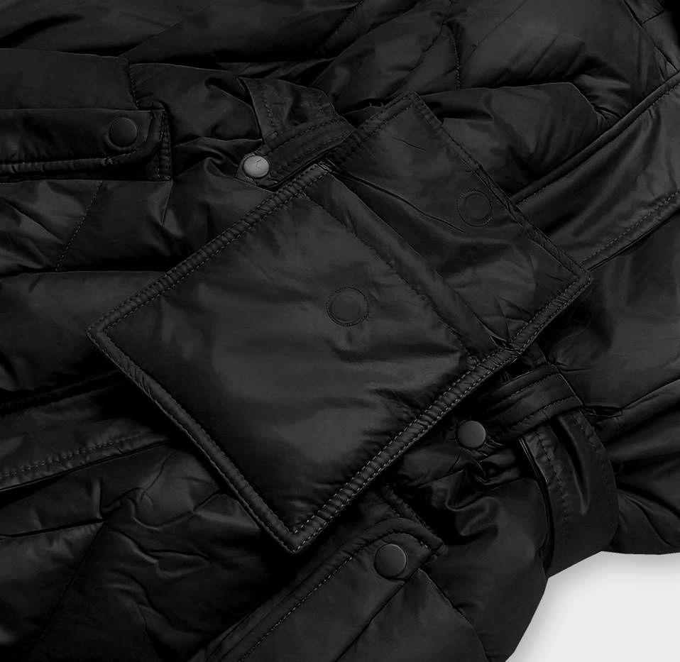 Puchowa kurtka ze stójką i kapturem czarna (ag2-j82)