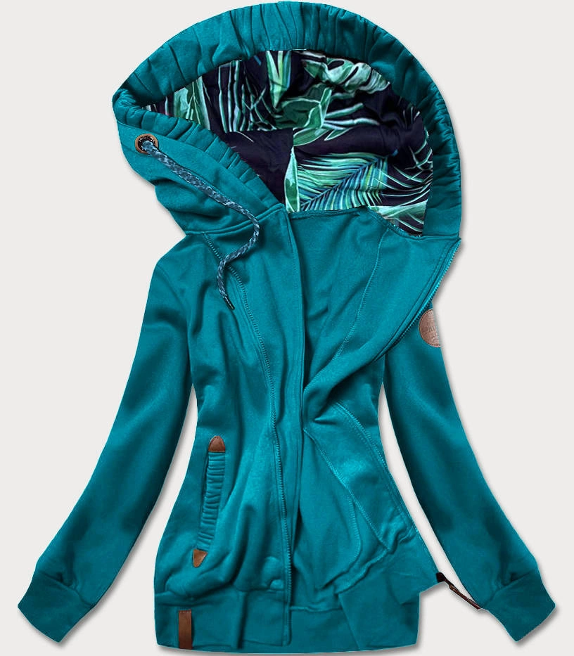 Opinie o Bluza damska z ozdobnym kapturem turkusowa (AMG725-2)