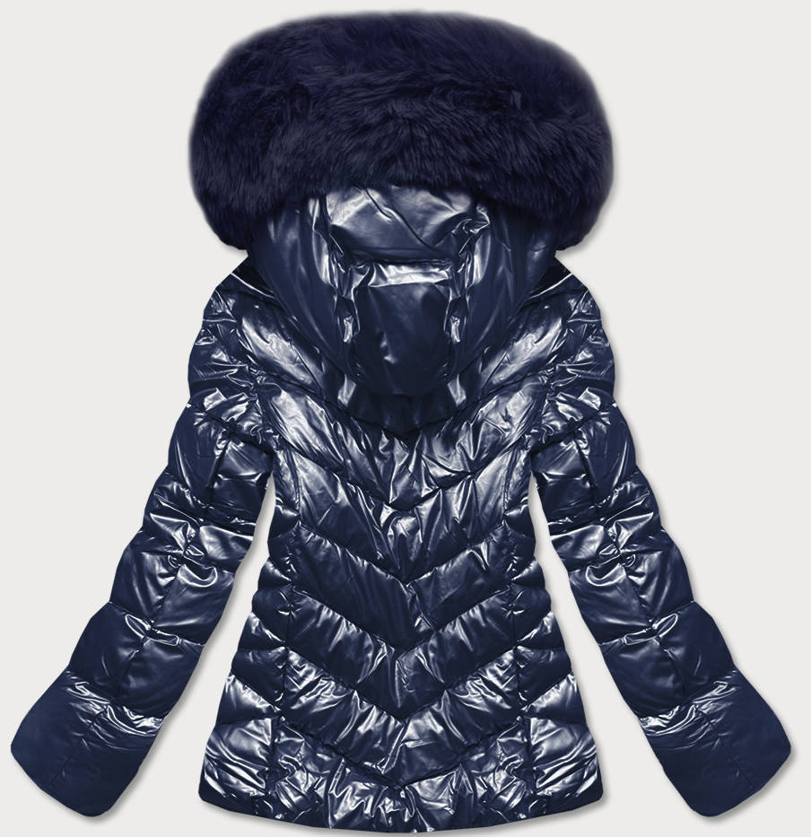 Krótka kurtka damska z futerkiem granatowa (TY036-2)