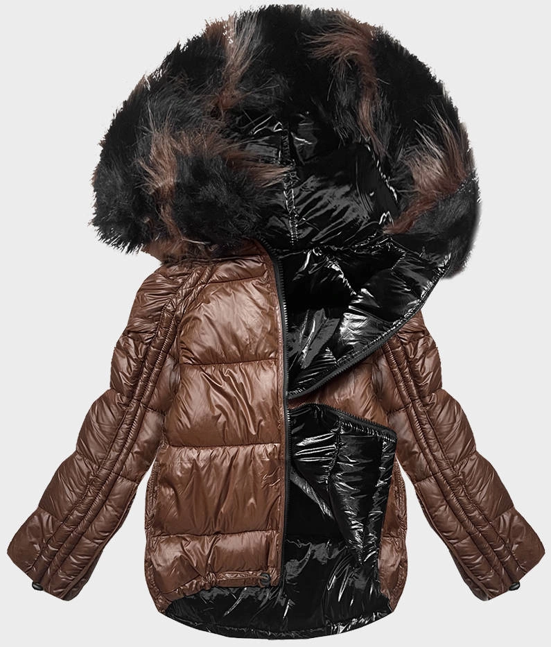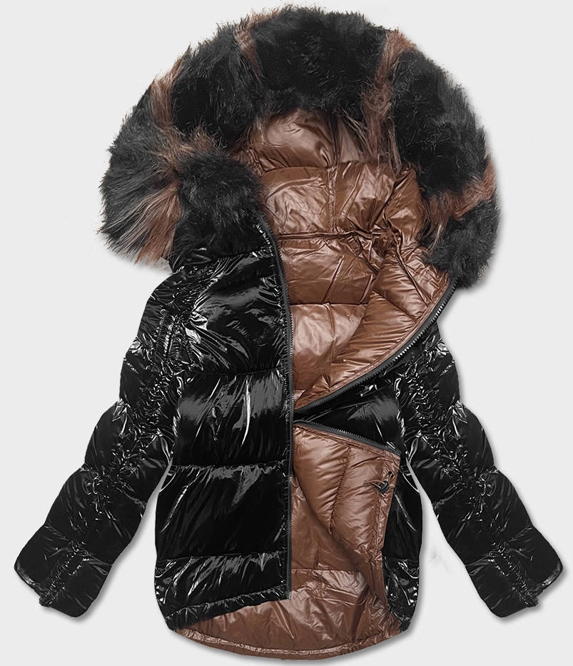 DWUSTRONNA KURTKA OVERSIZE CZARNO-BRĄZOWA (H-1080-01)