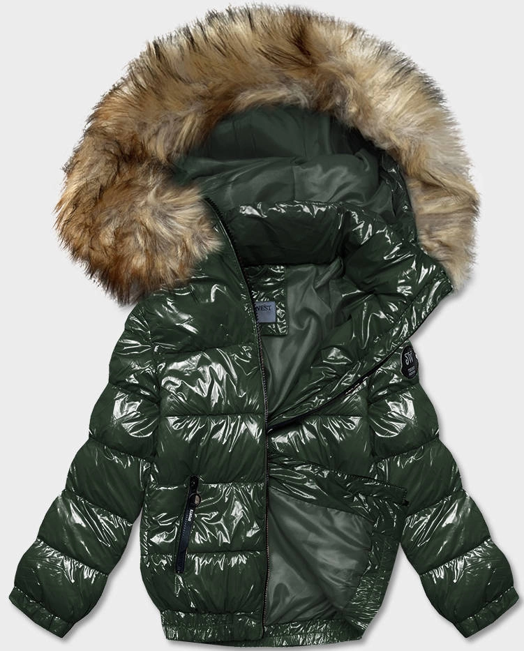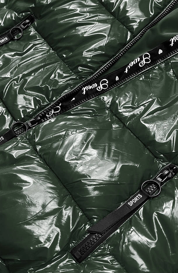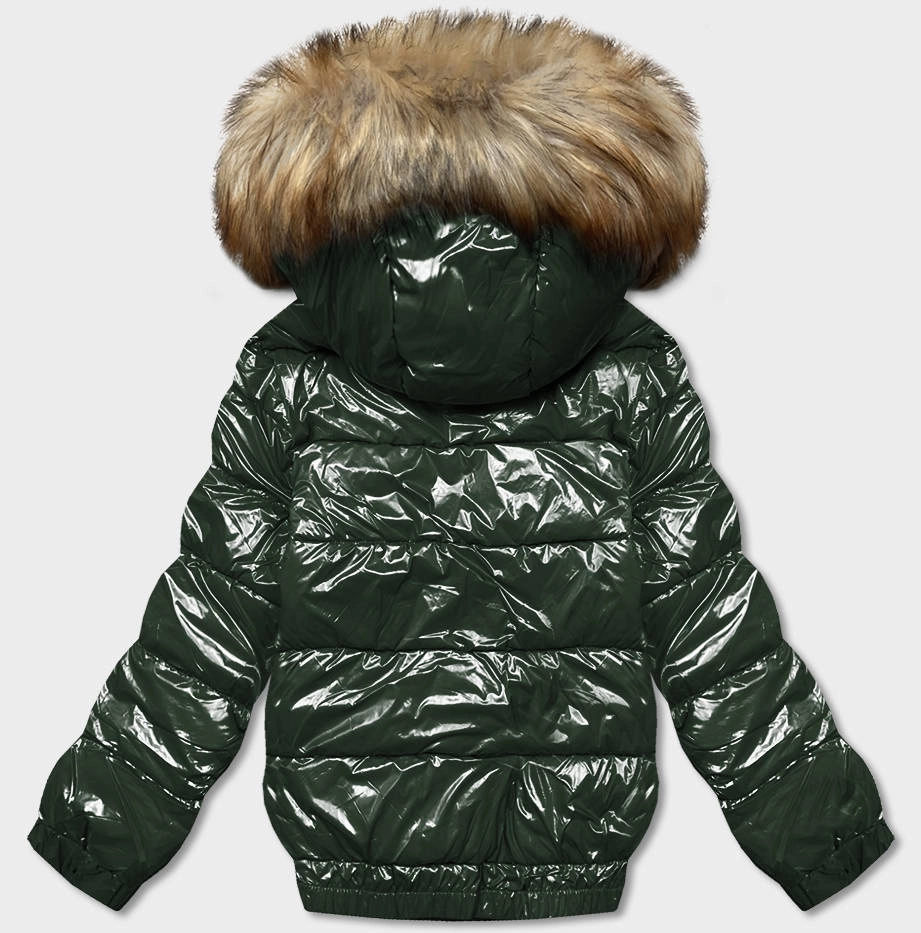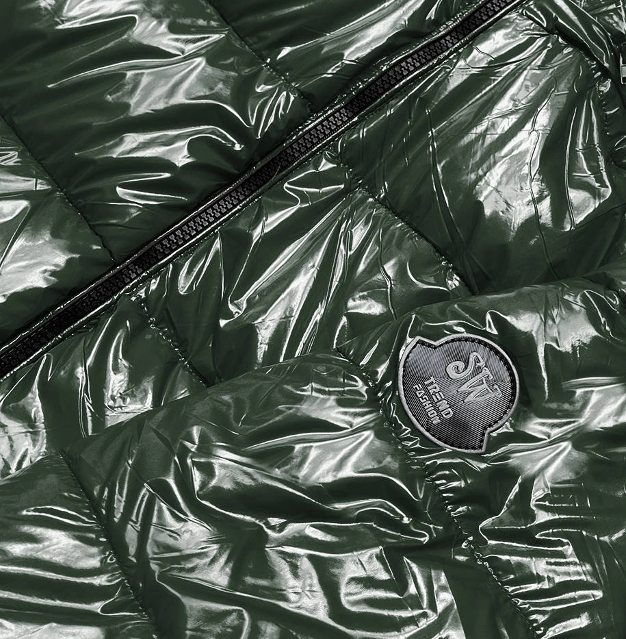 Lakierowana kurtka damska ciemnozielona (B8039-10)