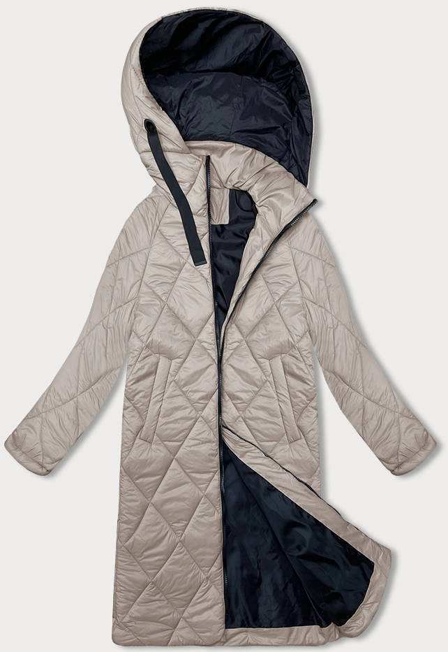 Długa kurtka damska z kapturem beżowa (5M3171-62)