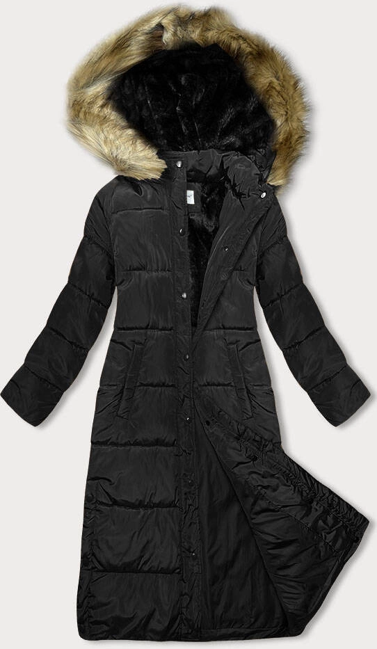 Opinie o Długa kurtka zimowa damska czarna (V725)