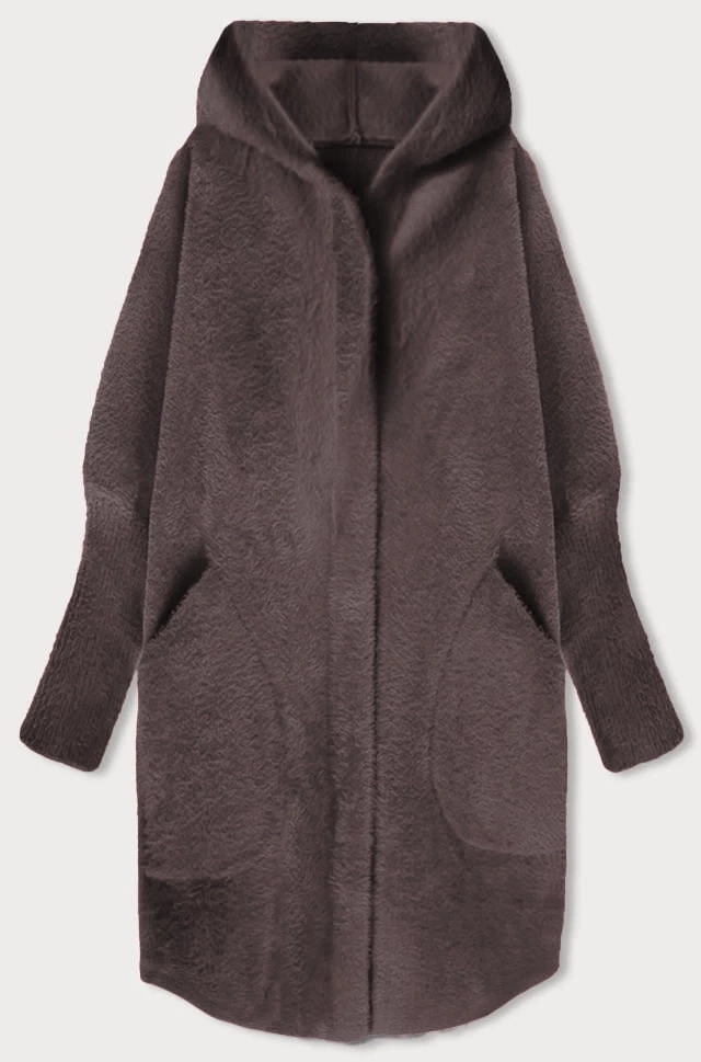 Długa wełniana narzutka alpaka z kapturem kakao (908)