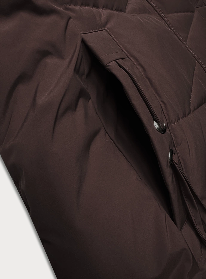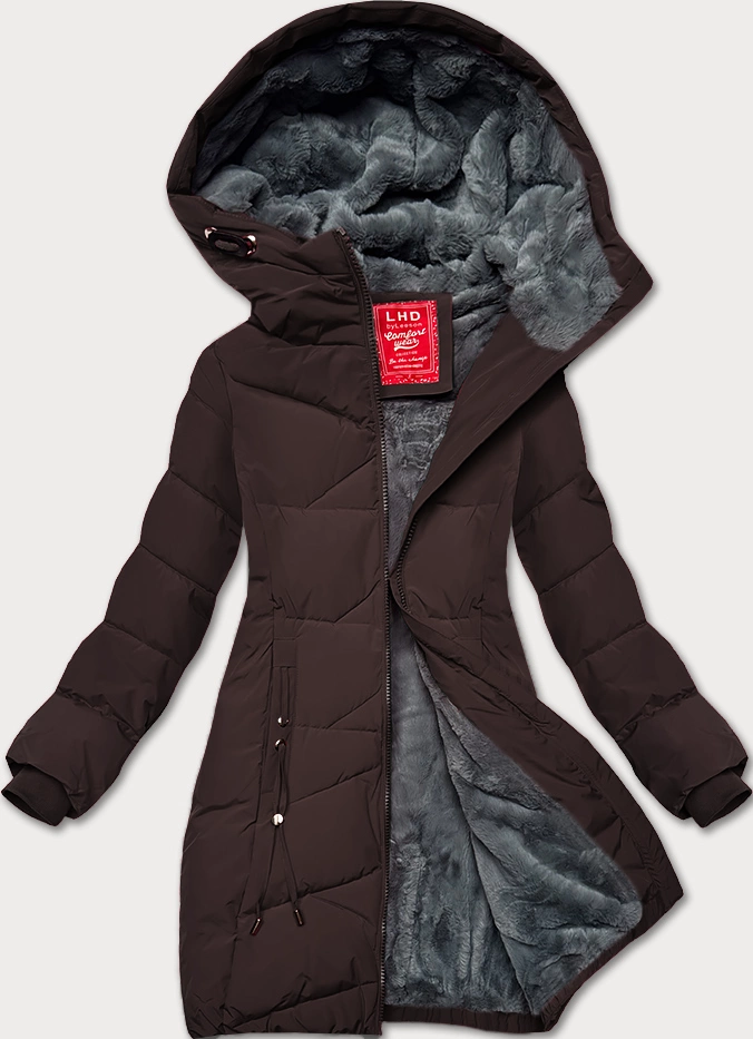 Zimowa kurtka damska ze ściągaczem LHD brązowa (LHD-24580)