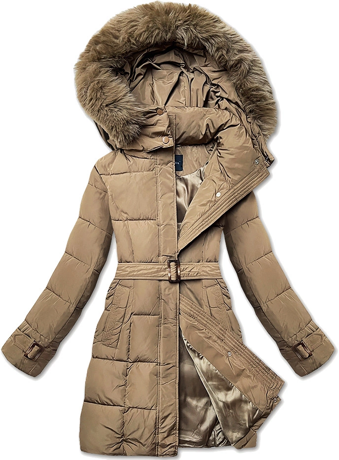 Damska kurtka zimowa z ozdobnymi paskami brązowa (23MY-208)