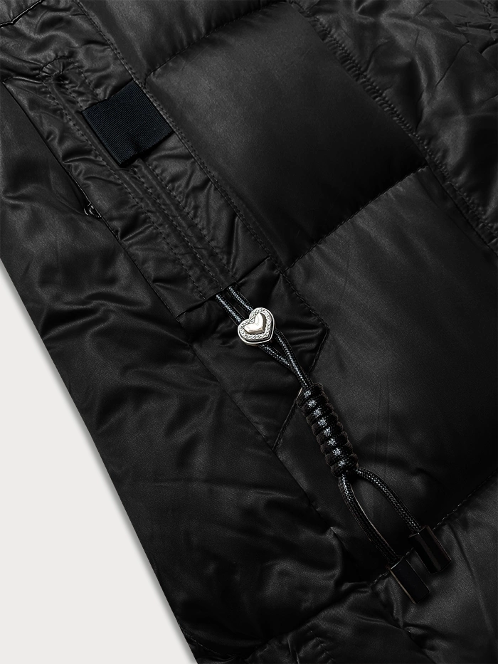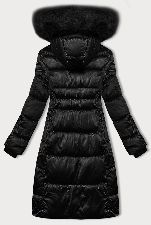 Zimowa pikowana kurtka plus size z kapturem S'west czarna (B8267-1)