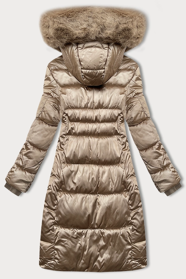 Zimowa pikowana kurtka plus size z kapturem S'west beżowa (B8267-12)