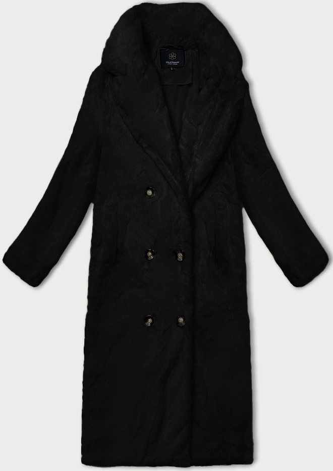 Płaszcz futerko damskie z kołnierzem czarne (WD2332)