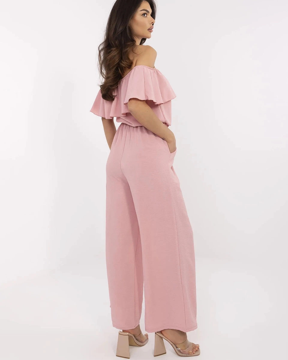 Elegancki kombinezon z szerokimi nogawkami brudny róż (T52)