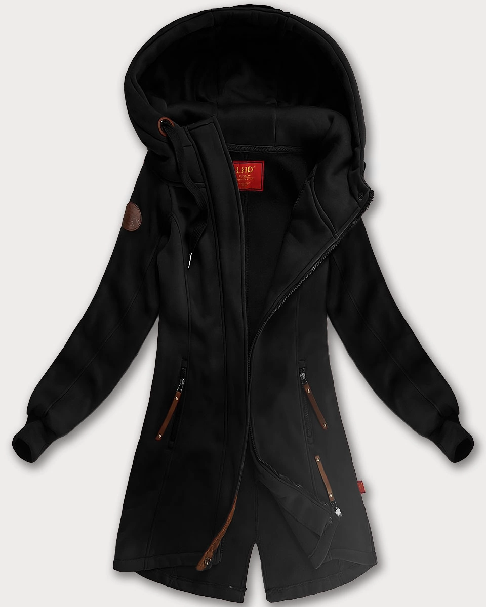Opinie o Długa bluza damska z kapturem czarna (AMG-675/2)