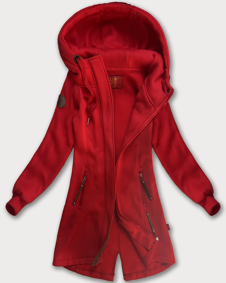 Opinie o Długa bluza damska z kapturem czerwona (AMG-675/2)