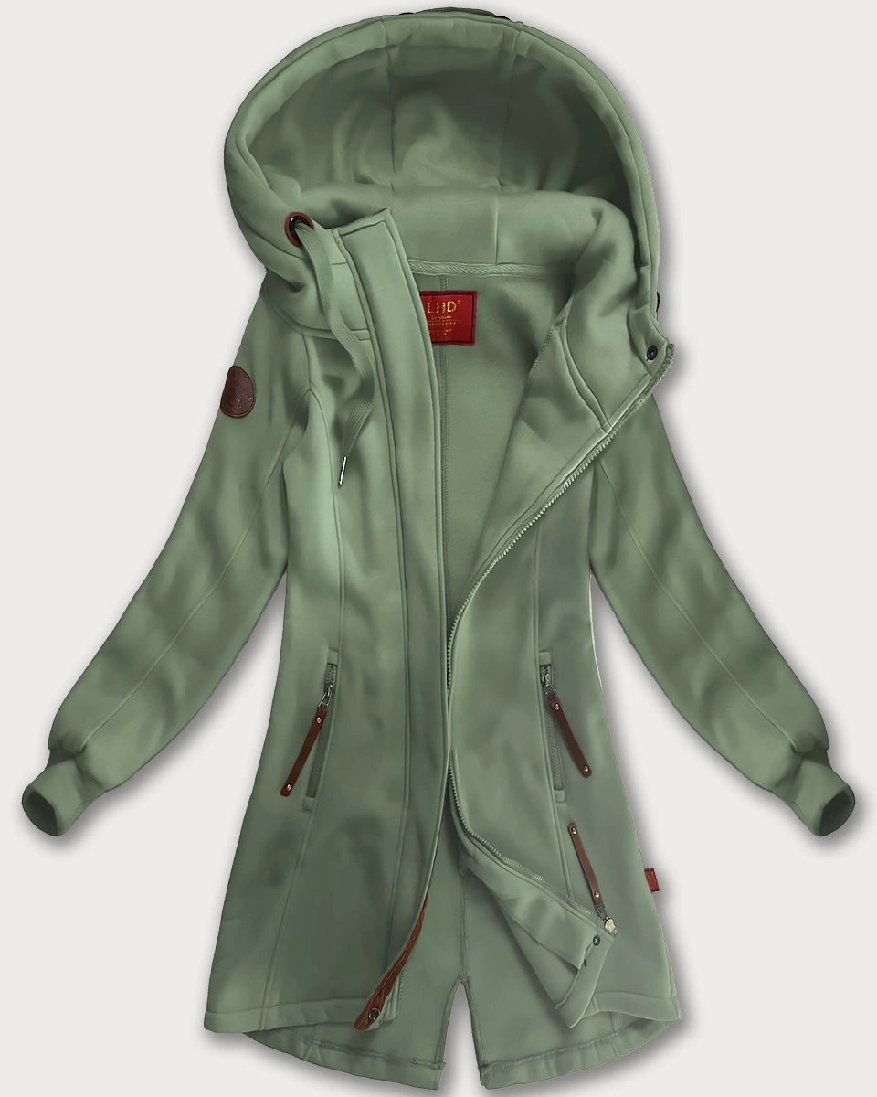 Opinie o Długa bluza damska z kapturem szarozielona (AMG-675/2)