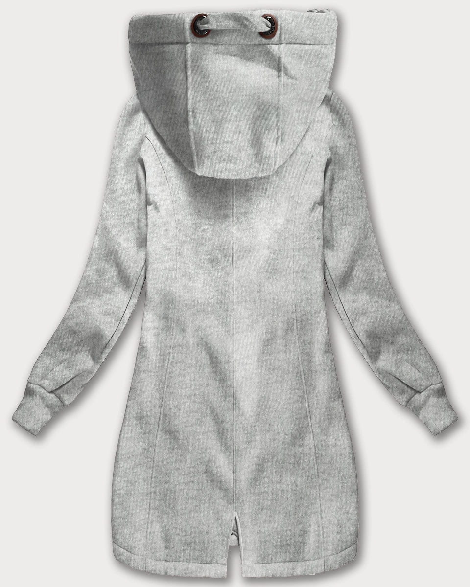 Długa bluza damska z kapturem jasny szary (AMG-675/2)