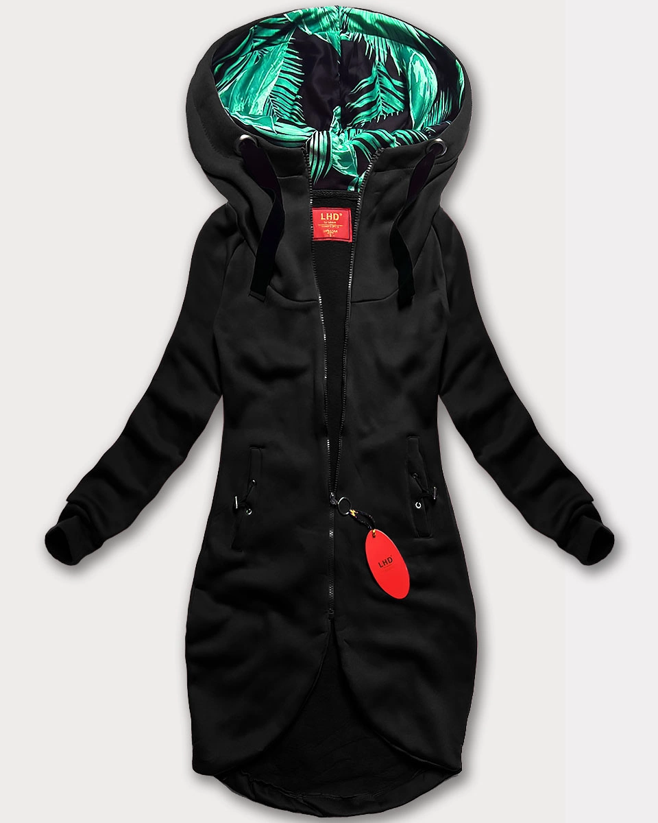 Opinie o Długa bluza damska z asymetrycznym dołem LHD czarna (AMG-13)