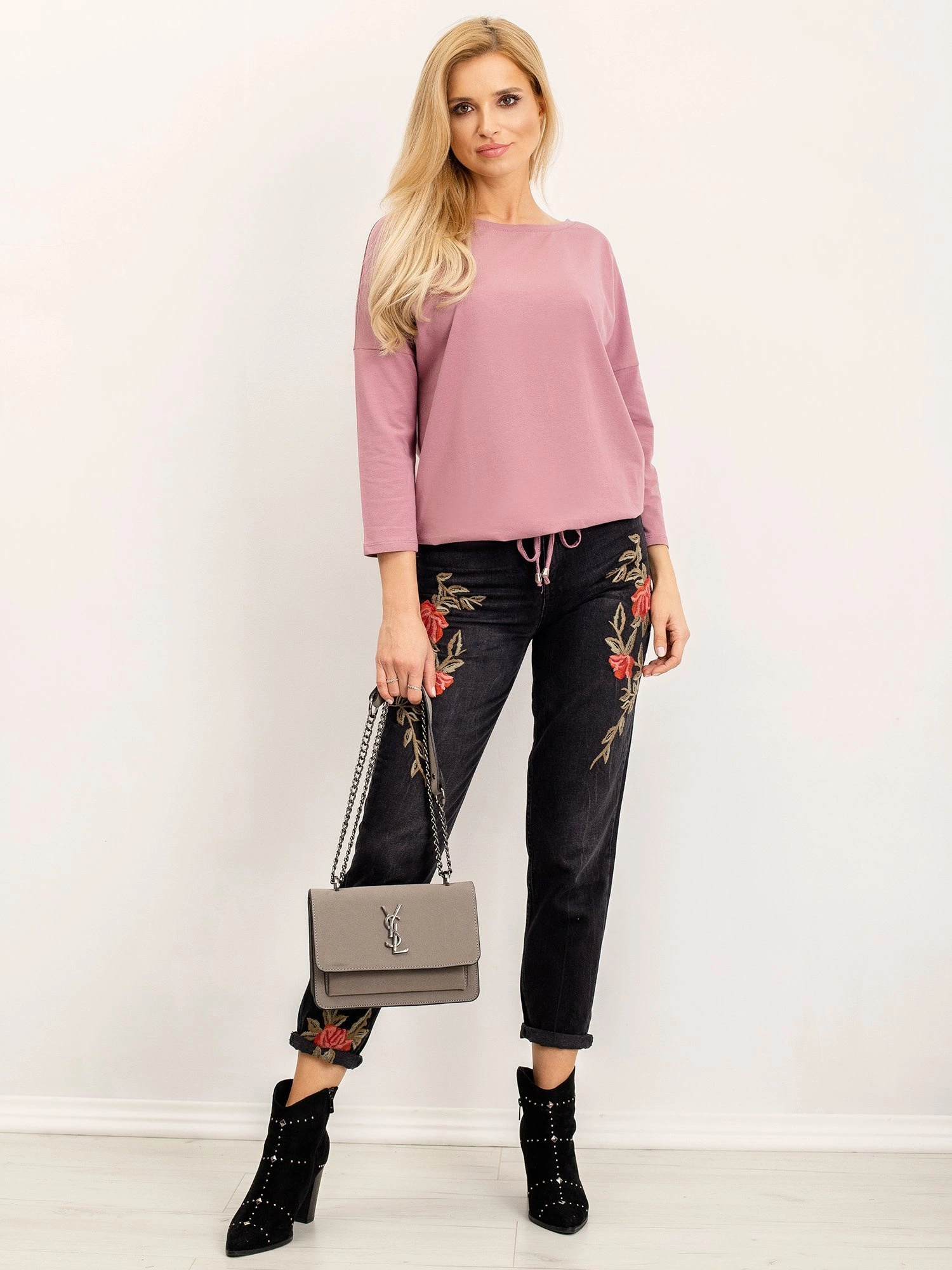 Luźna bluzka z wiązaniem na dole brudny róż (4691)