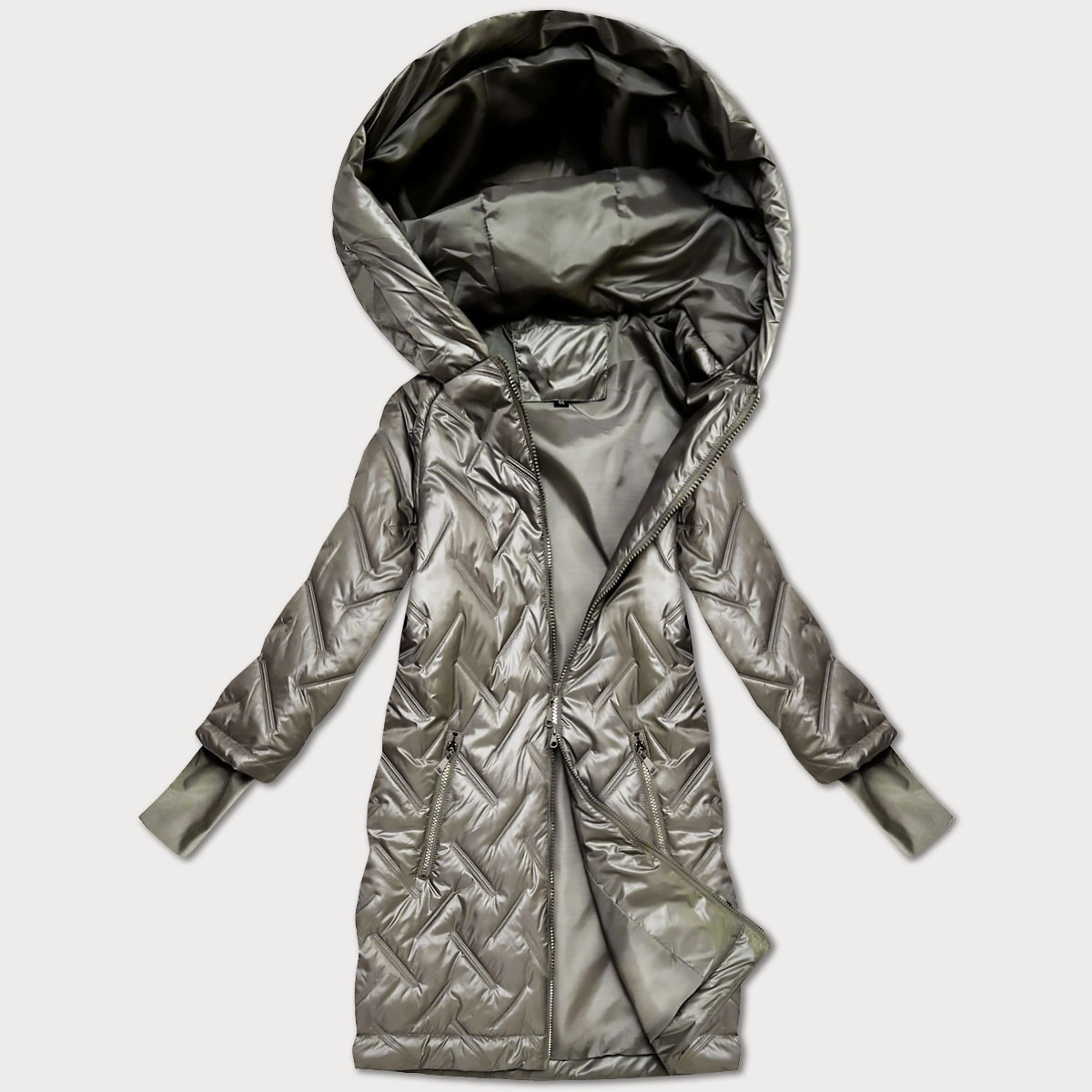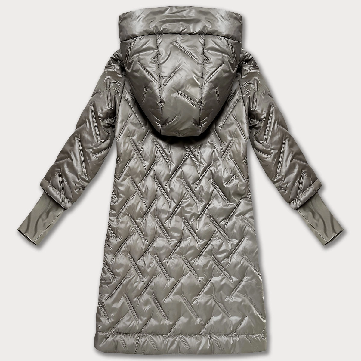 Pikowana kurtka z kapturem fason trapez beżowa (T2-2290#-62)