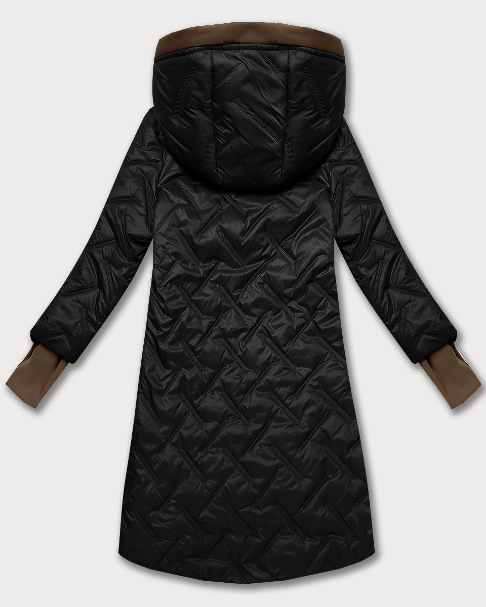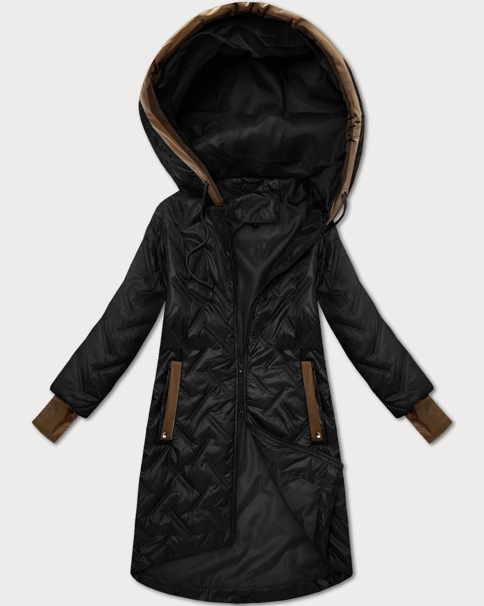 Pikowana kurtka damska z ozdobnymi wstawkami czarna (T2-2291#-1)