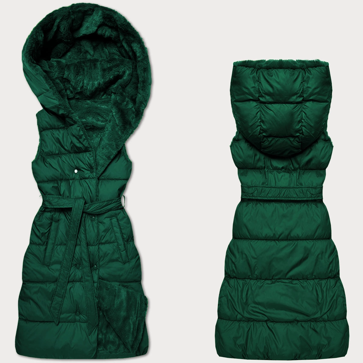 Gruba dwustronna kamizelka puchowo-futrzana Minority ciemny zielony (P3-6035-33)