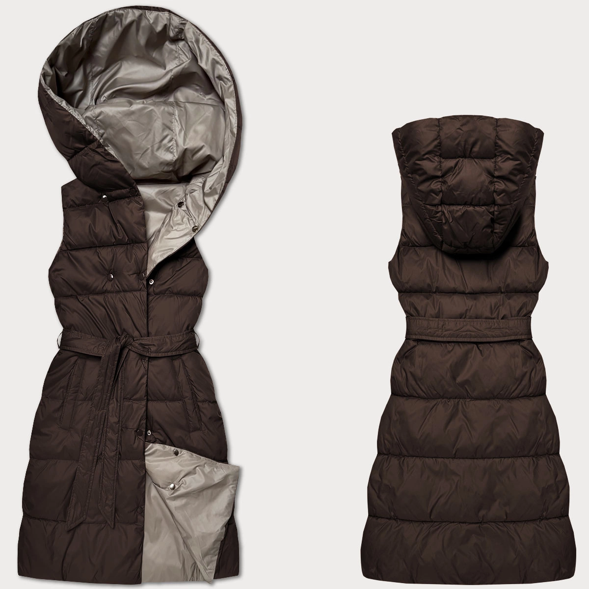 Dwustronna kamizelka puchowa Minority czekolada-beż (P3-6016-103+62)