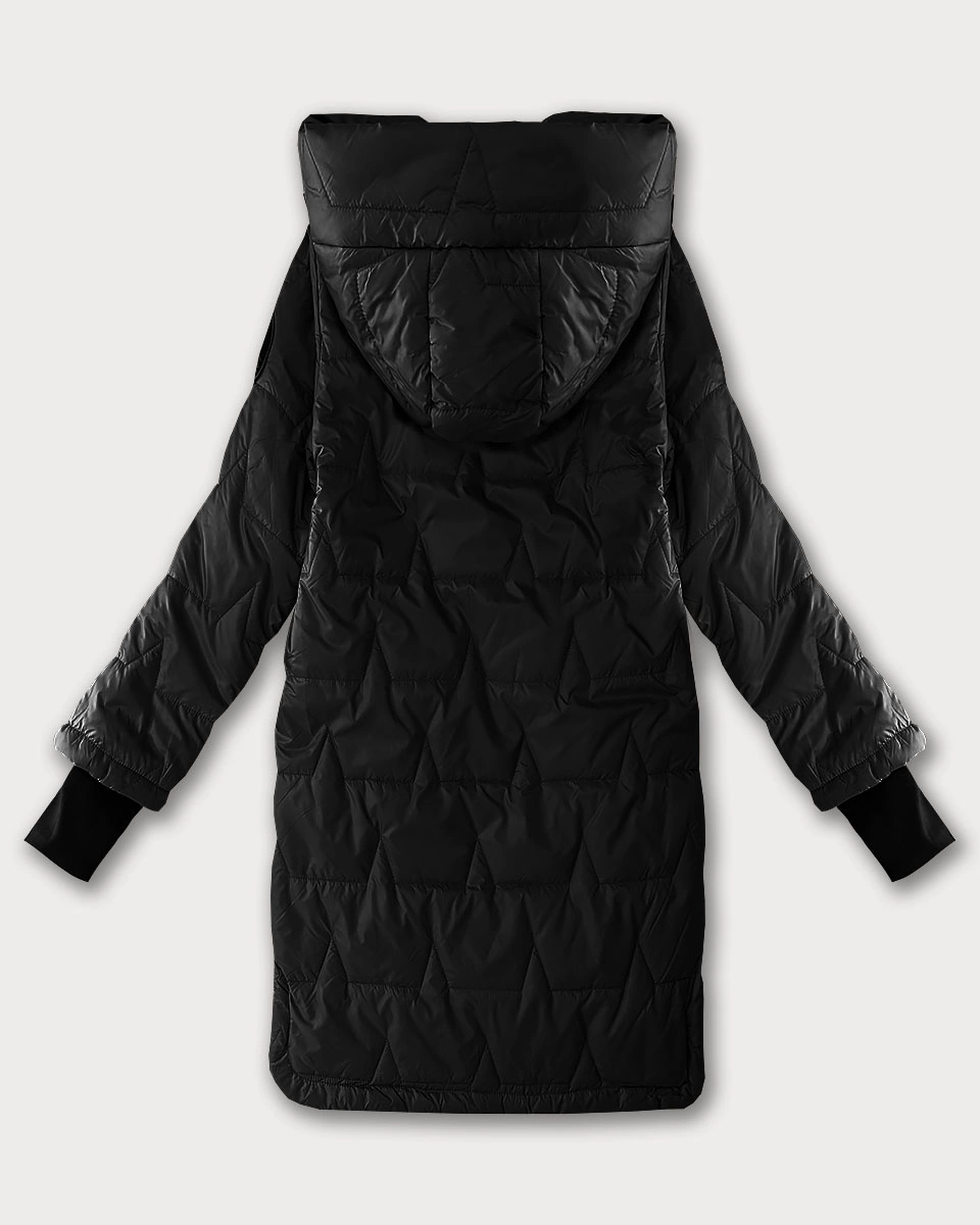 Pikowana kurtka damska z dzianinowymi ściągaczami S'West czarna (B8505-1)