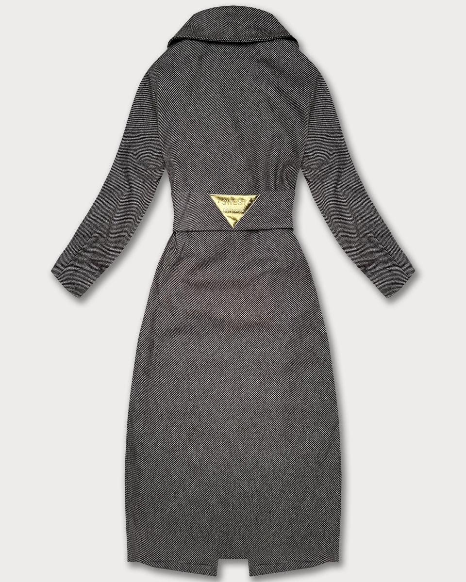 Długi płaszcz damski z paskiem S'West brązowy-paseczki (B8542-14)