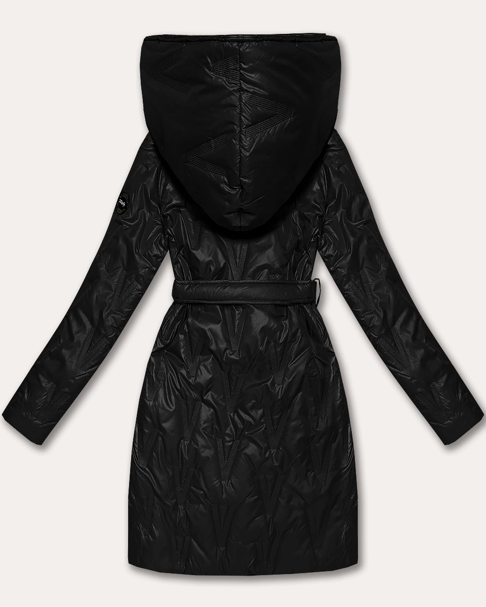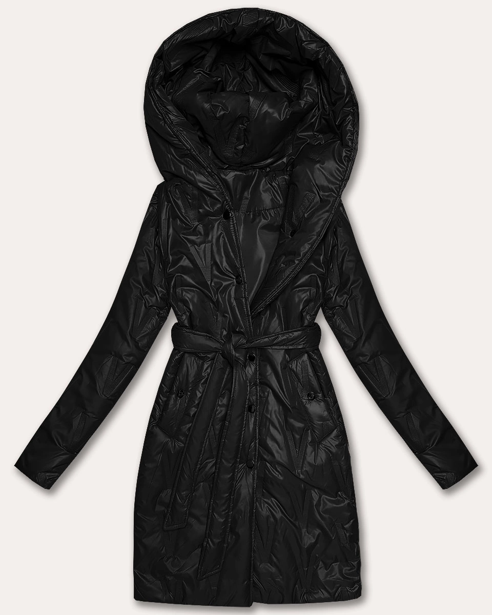 Pikowany płaszcz damski z paskiem S'West czarny (B8508-1)