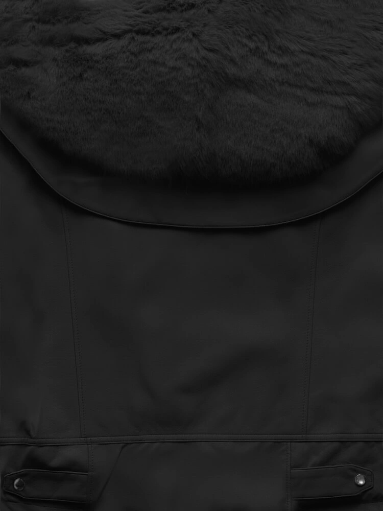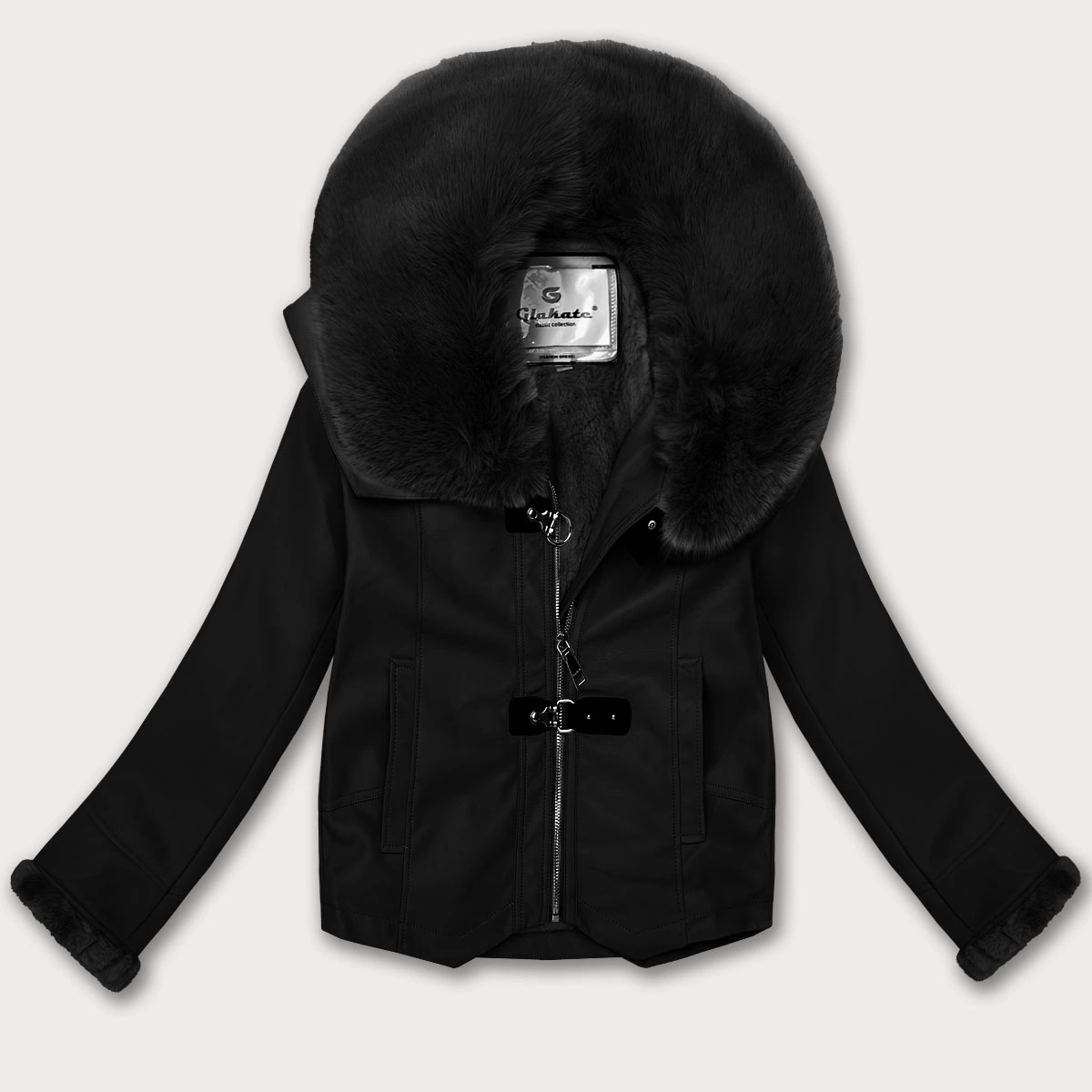 Kurtka ze skóry ekologicznej z futrzanym kołnierzem Glakate czarna (LU98091#)