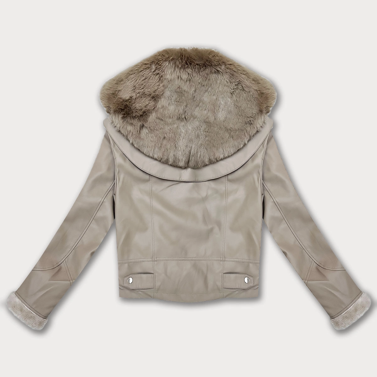 Kurtka ze skóry ekologicznej z futrzanym kołnierzem Glakate beżowa (LU98091#)