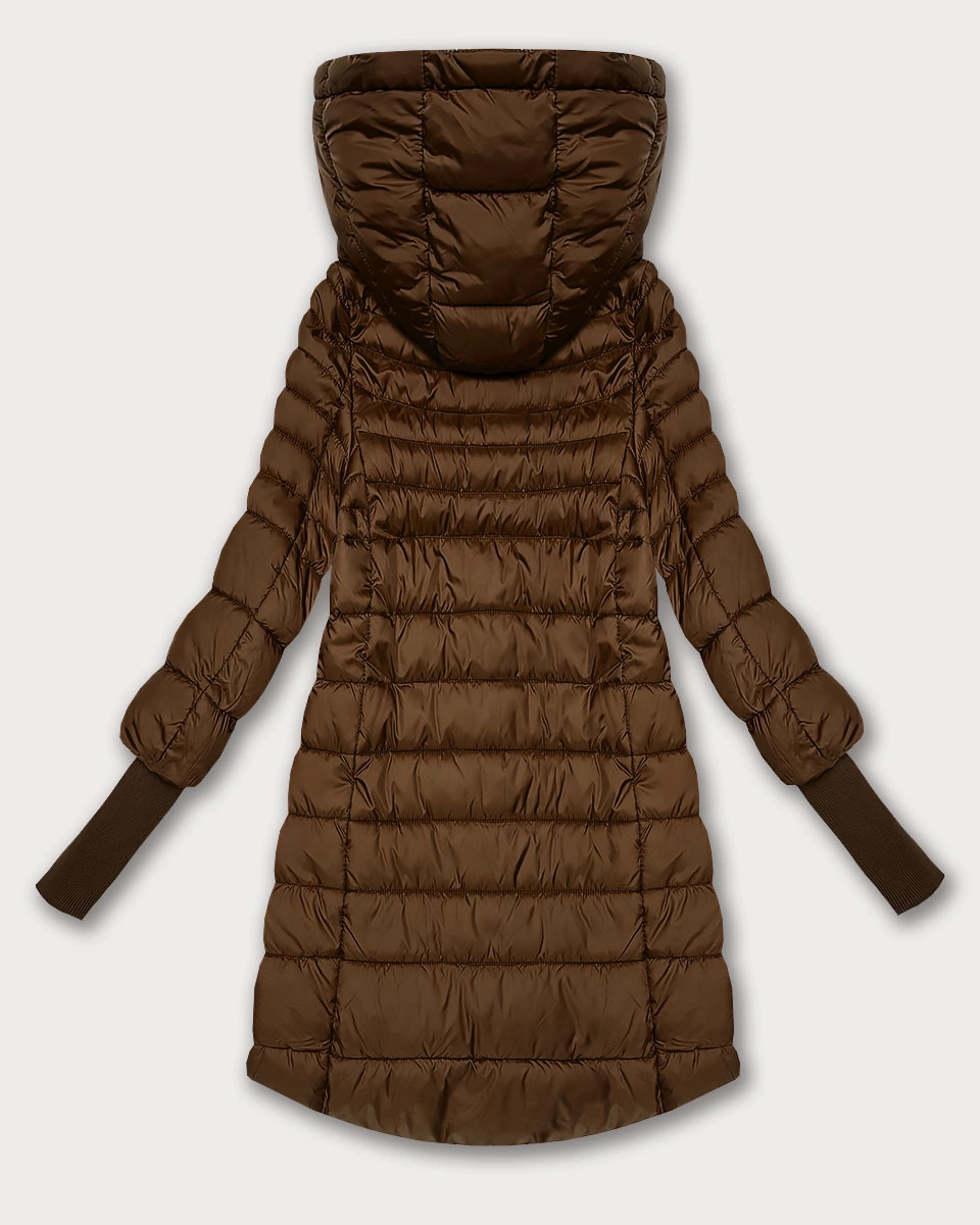 Przejściowa kurtka damska z dzianinowymi ściągaczami karmelowa (1828)