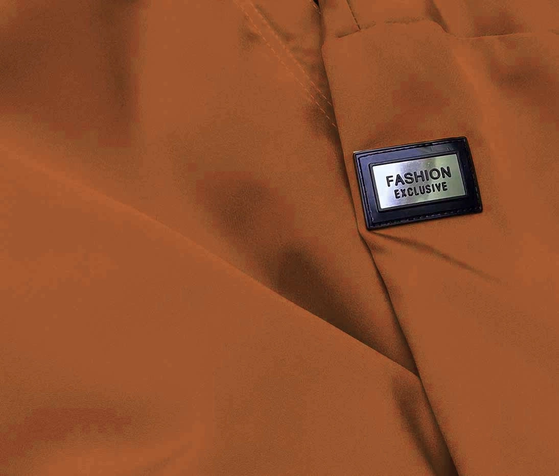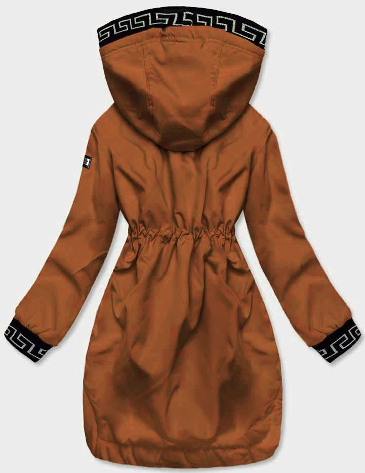 Cienka kurtka damska z ozdobną lamówką karmelowa (B8106-22)