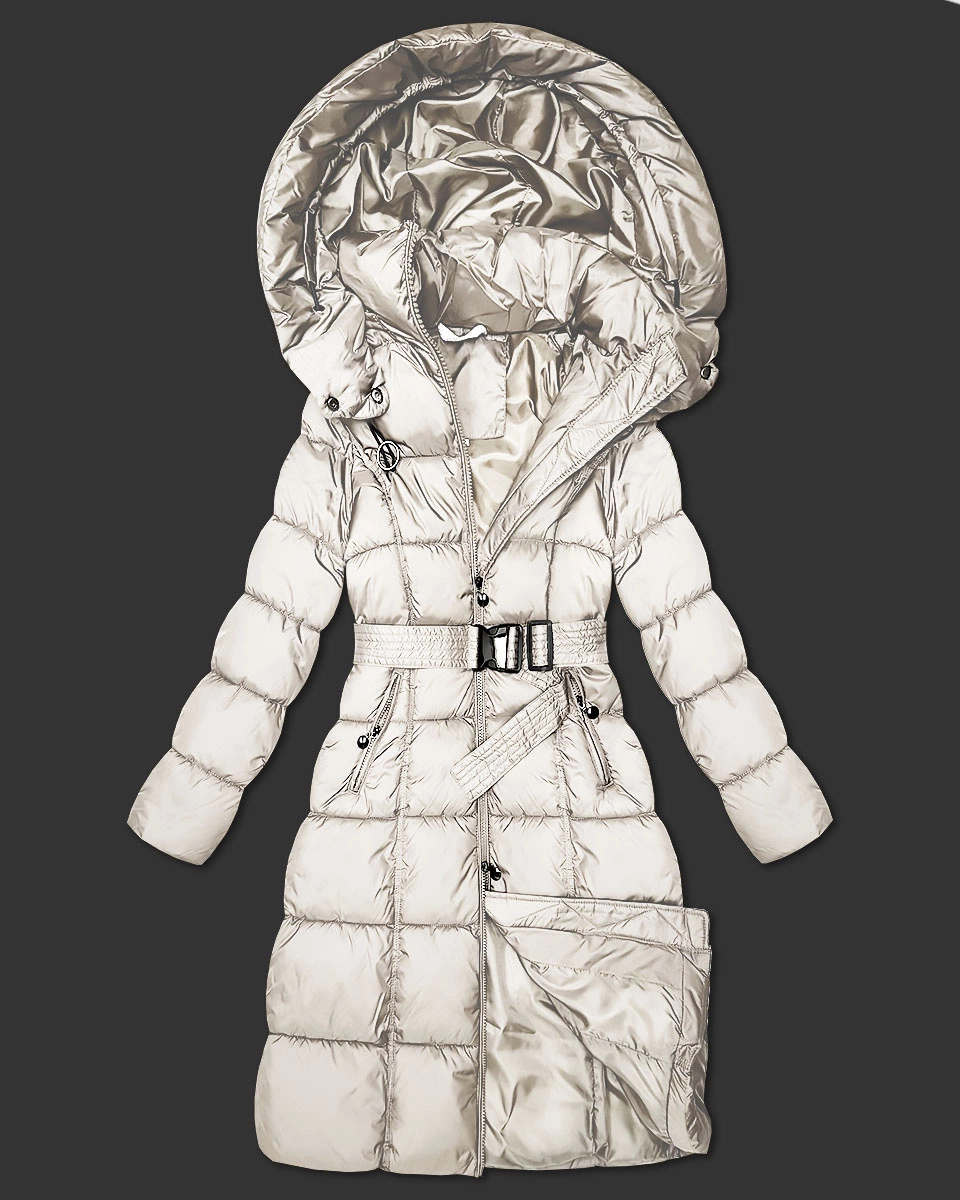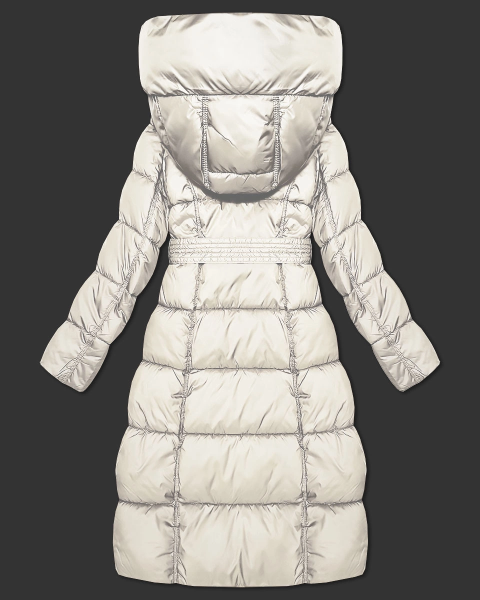 Długa gruba kurtka zimowa z paskiem Minority ecru (P3-6033-12)
