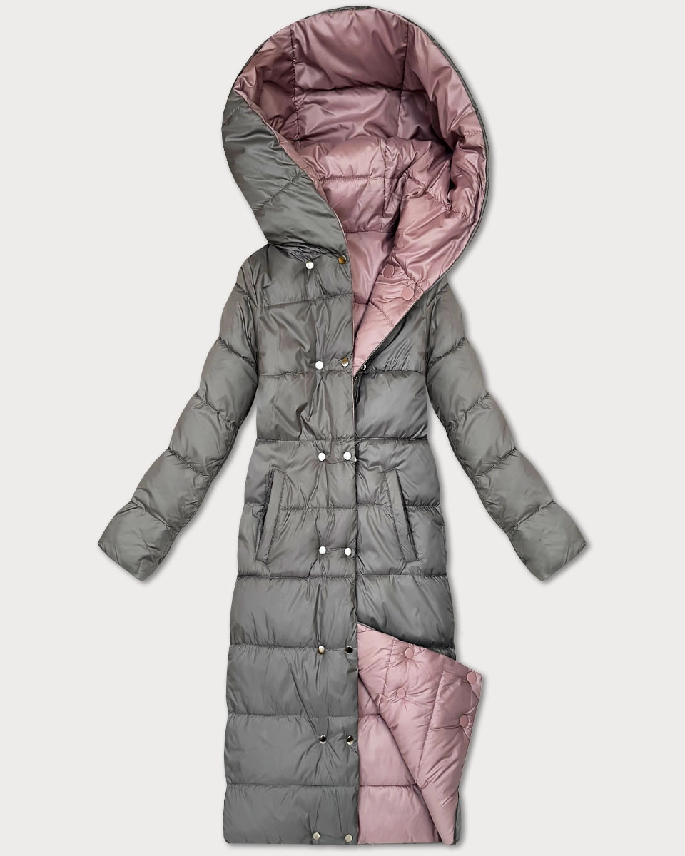 Dwustronna zimowa kurtka do kolan Minority róż-szary (P3-6017-52+61)