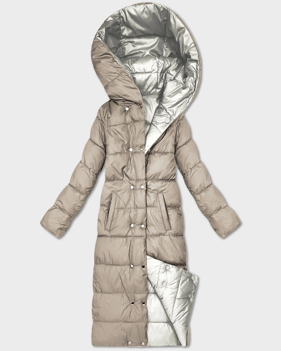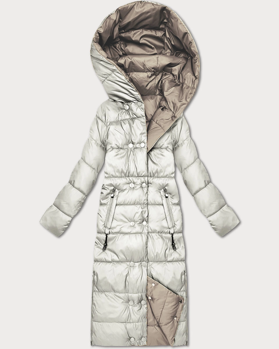 Dwustronna zimowa kurtka do kolan Minority ecru-beż (P3-6017-12+62)