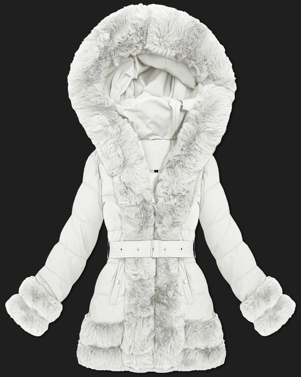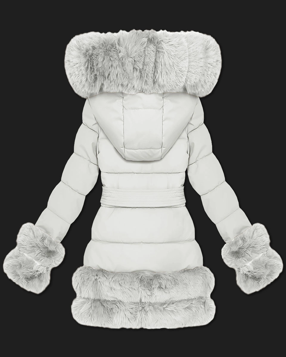 - Odpinany futrzany panel wokół kaptura i wzdłuż zamka