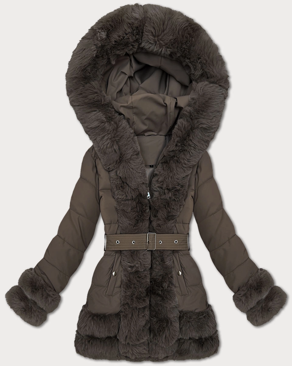 Przejściowa elegancka kurtka z futerkiem S'West brązowa (B8526-48)