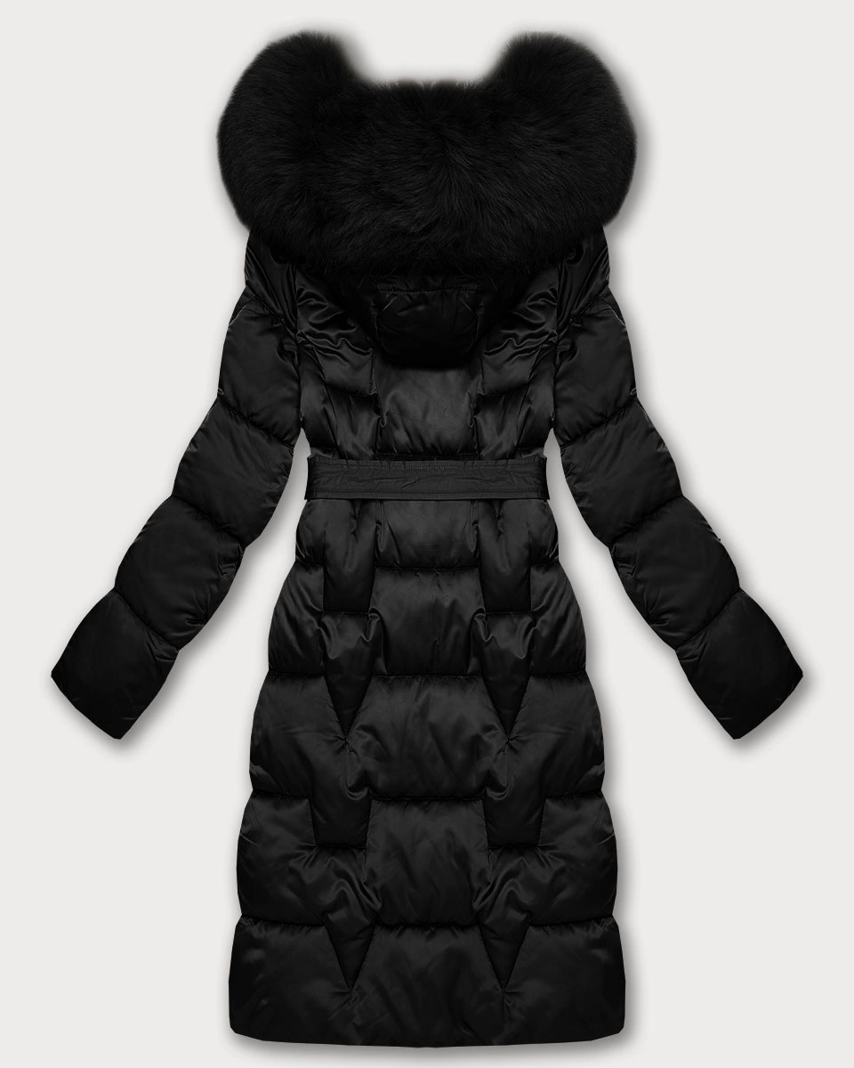 Zimowa damska kurtka z paskiem S'West czarna (B8305-1)