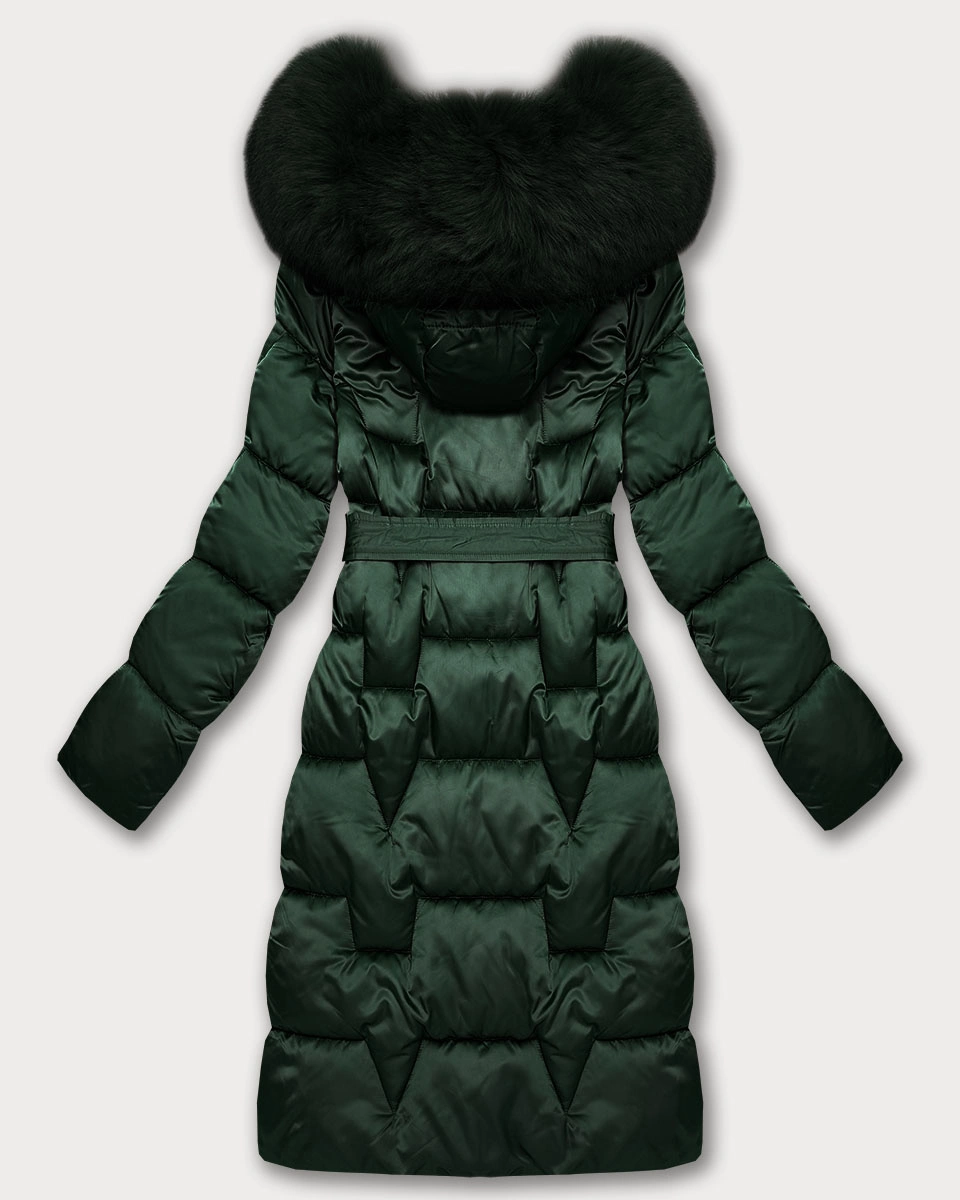 Zimowa damska kurtka z paskiem S'West ciemny zielony (B8305-10)