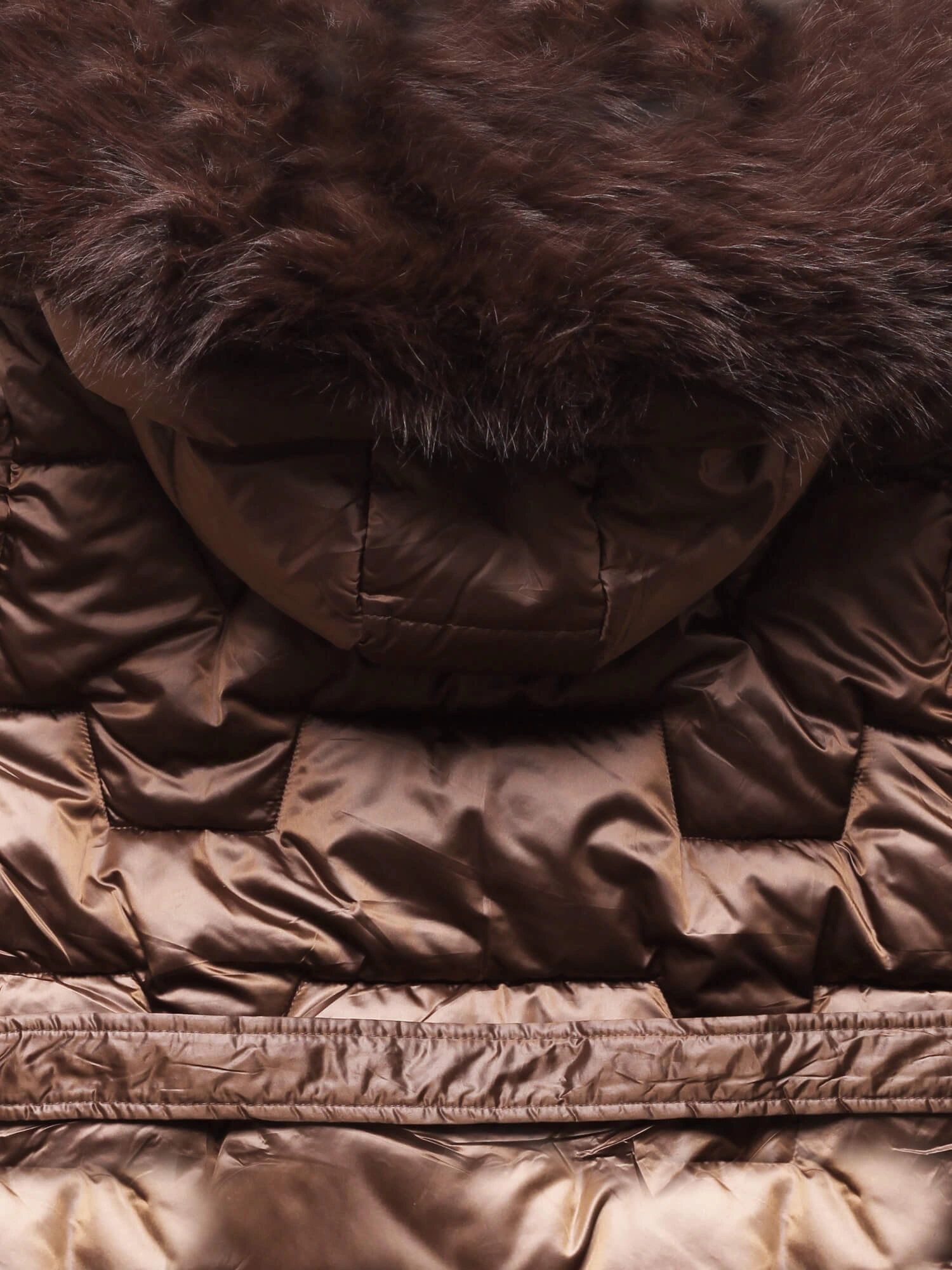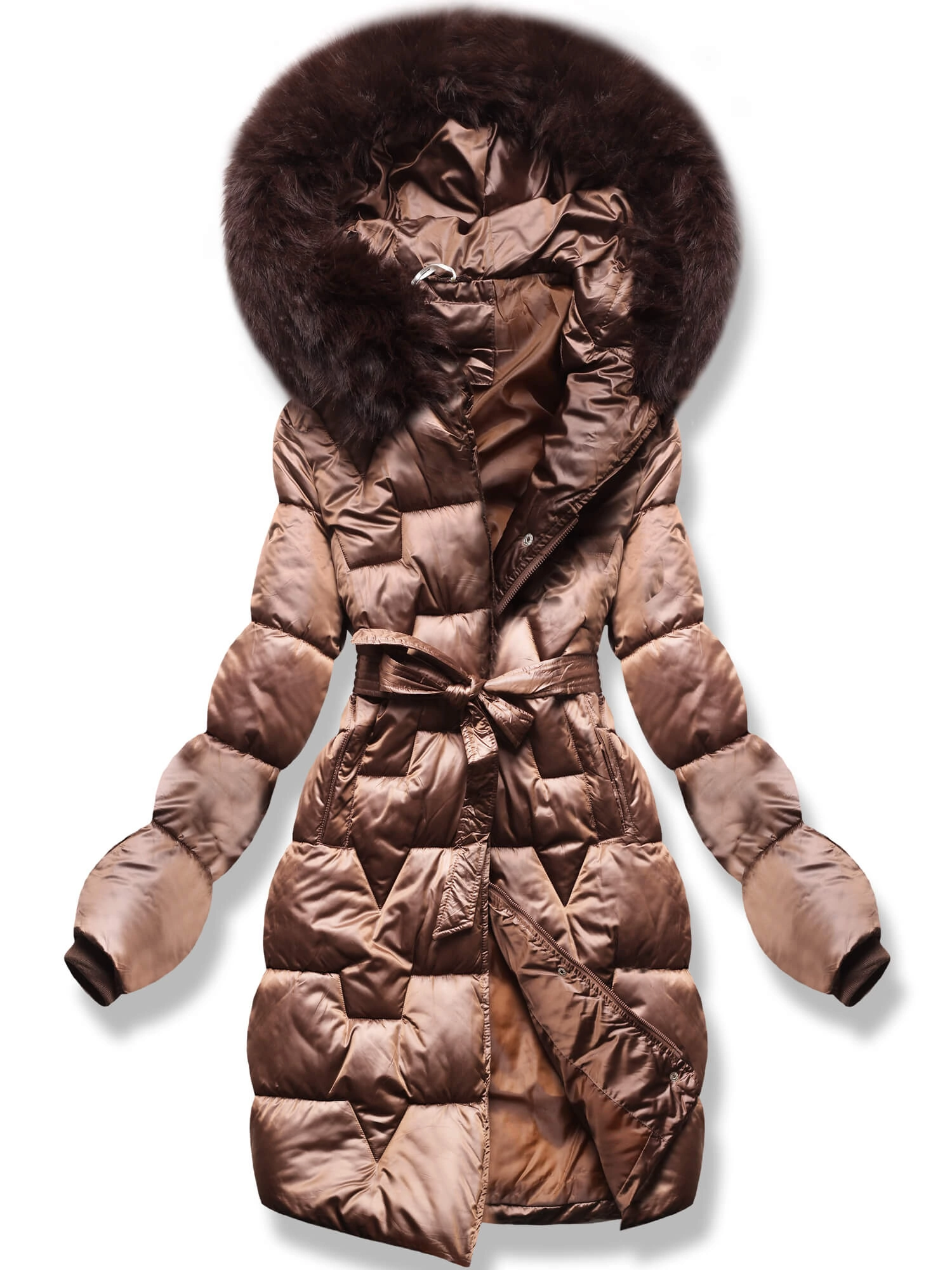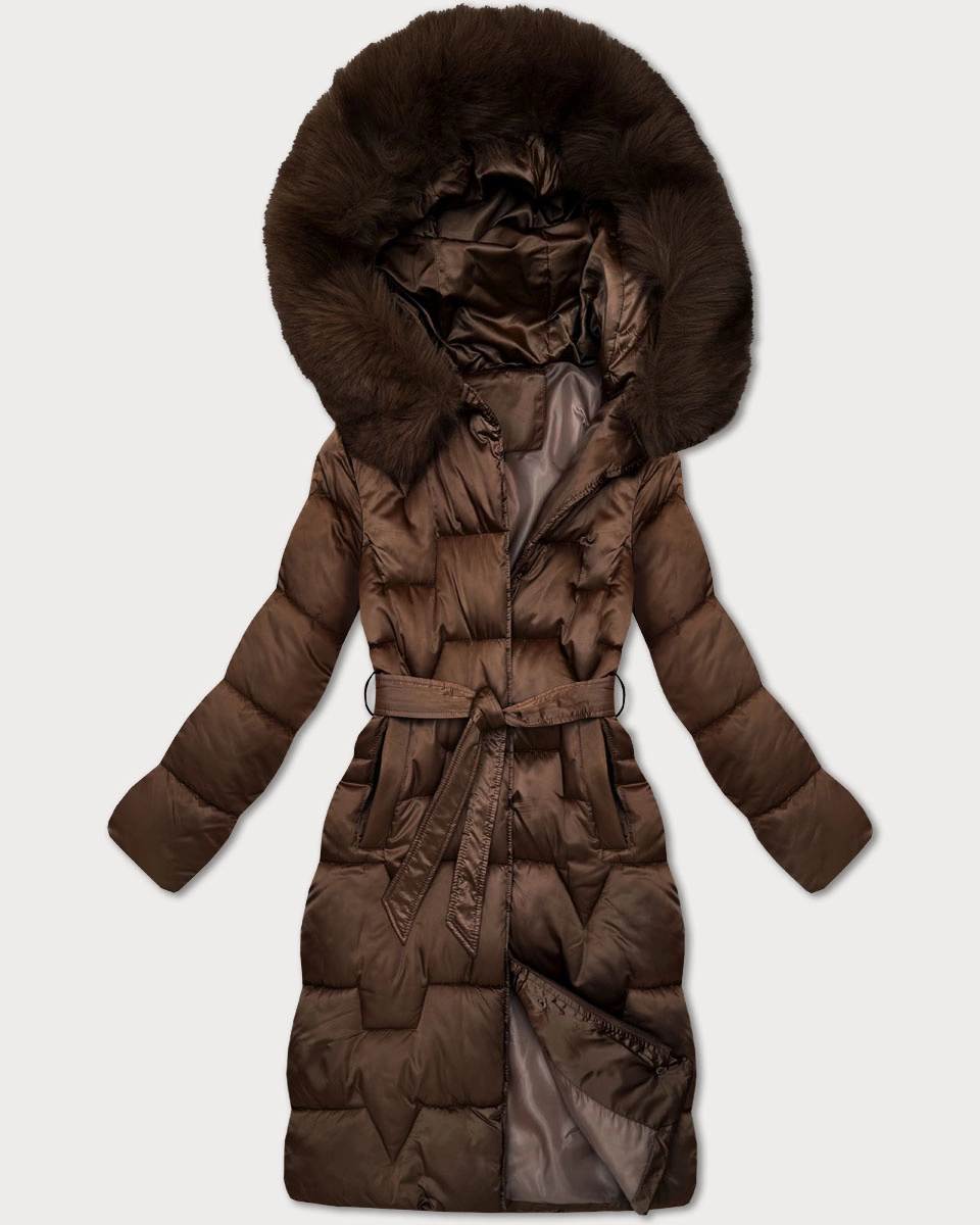 Zimowa damska kurtka z paskiem S'West czekoladowa (B8305-14)