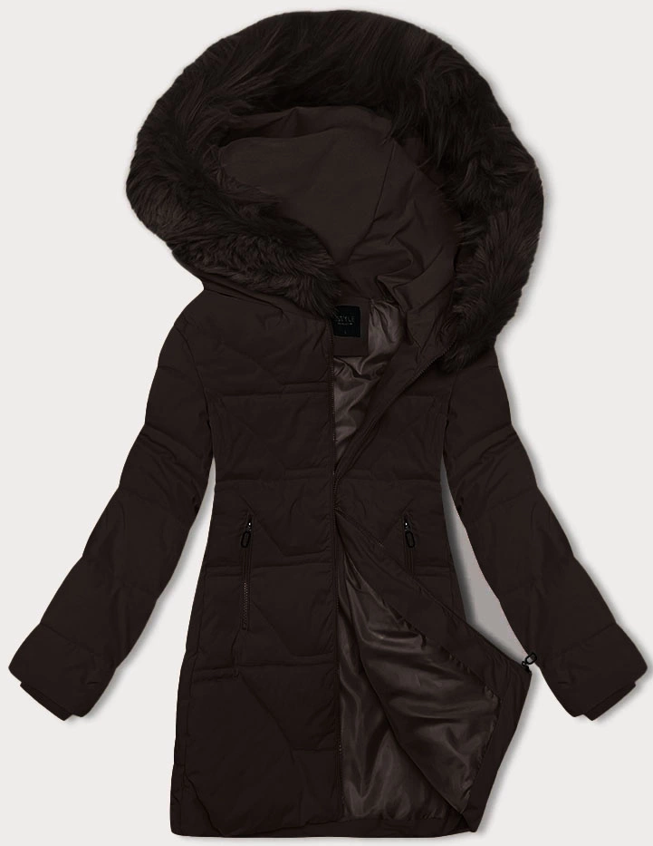 Zimowa kurtka damska z kapturem J Style czekoladowa (16M9099-158)