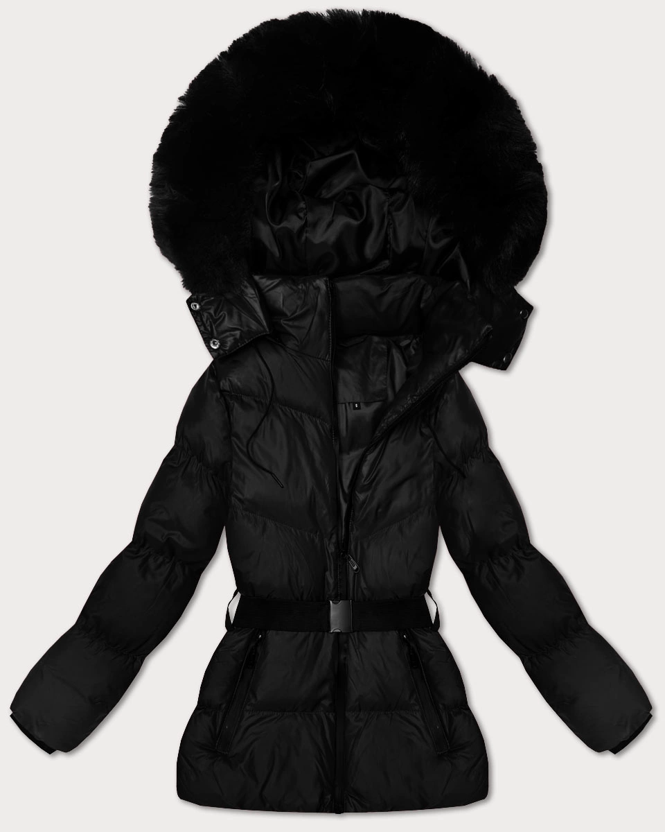 Zimowa kurtka z kapturem i paskiem J Style czarna (5M3322-392)