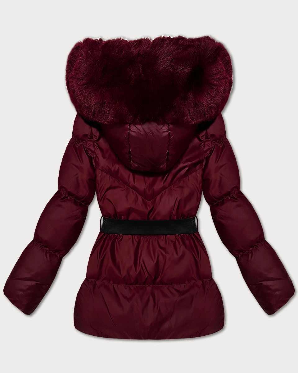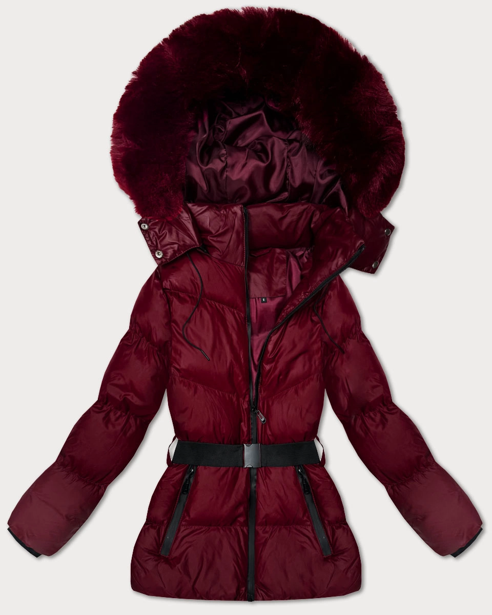 Zimowa kurtka z kapturem i paskiem J Style bordowa (5M3322-1)