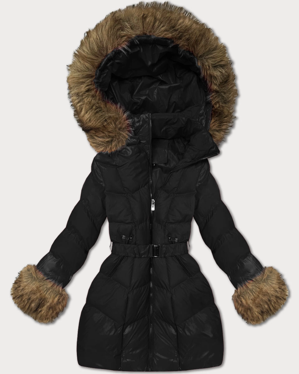 Pikowana przejściowa kurtka damska z futerkiem J Style czarna (5M3357-392)