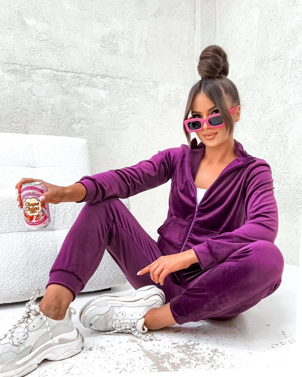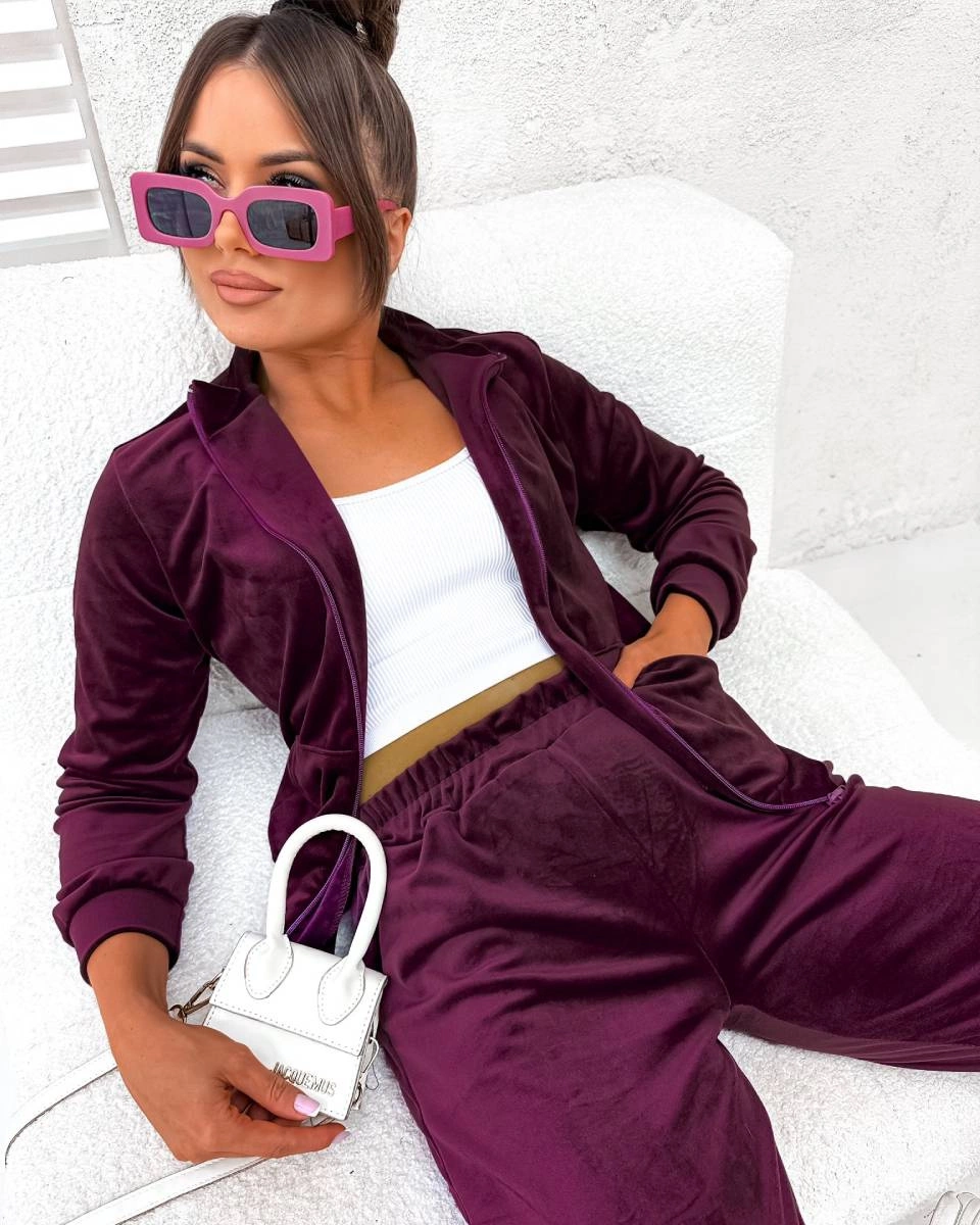 Welurowy komplet z rozpinaną bluzą bordowy (771)