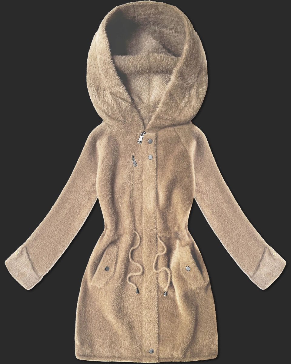 Wełniana kurtka alpaka z kapturem jasny beżowy (W214#)