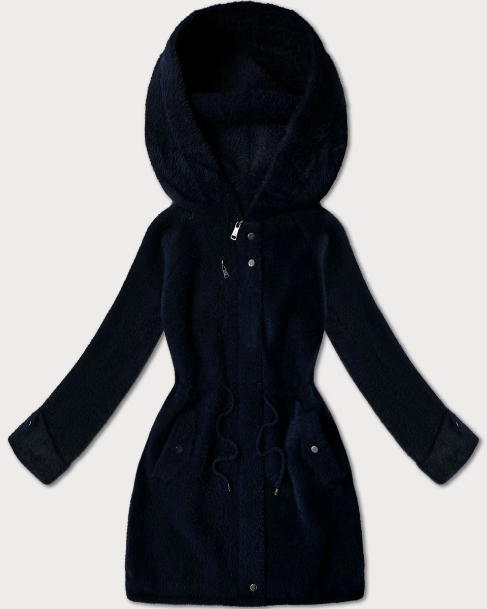 Wełniana kurtka alpaka z kapturem granatowa (W214#)