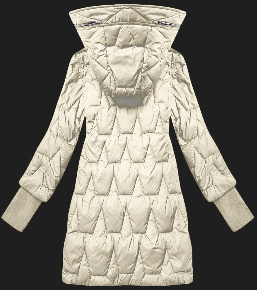 Pikowana przejściowa kurtka damska z dzianinowymi ściągaczami Libland ecru (LD-7775)