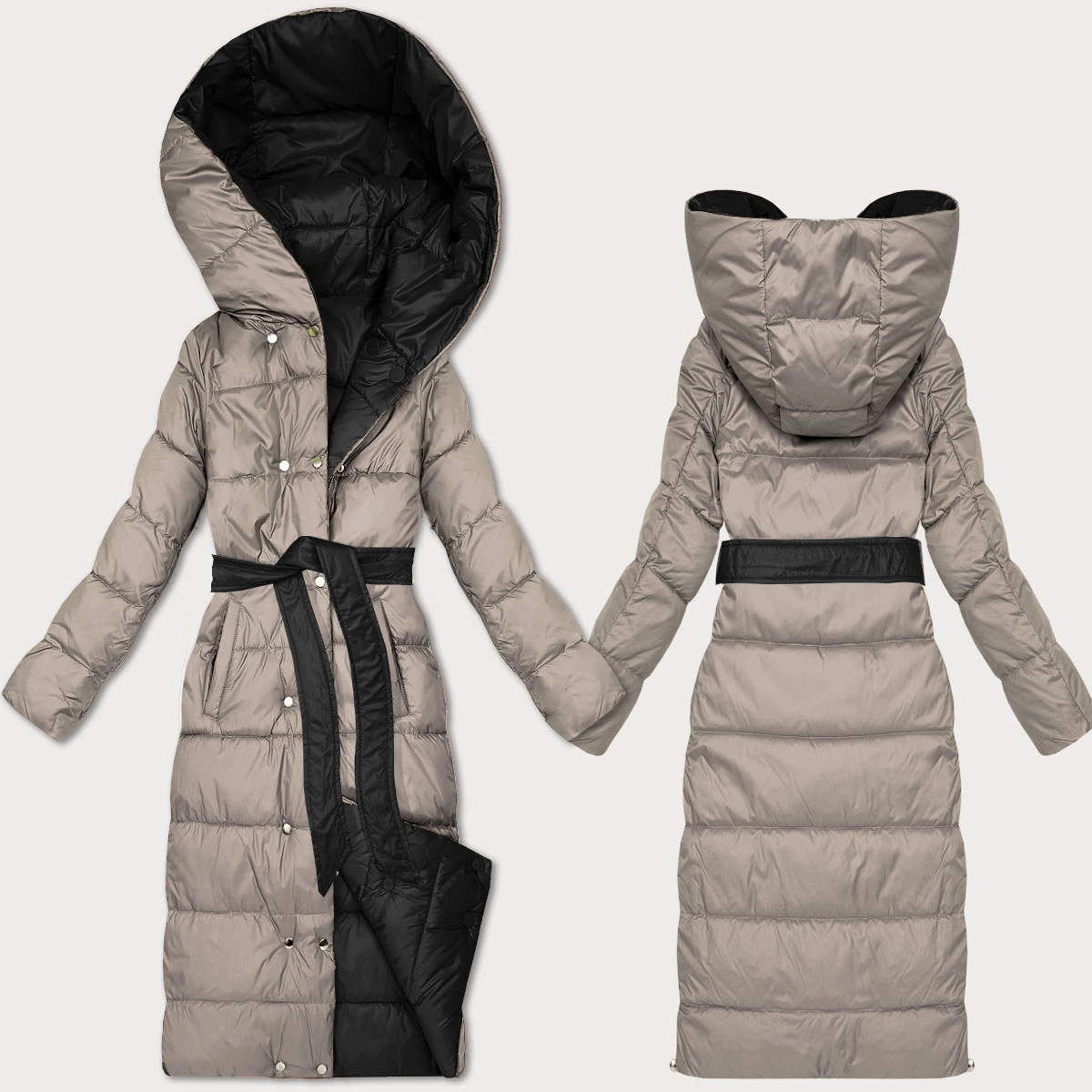 Dwustronna zimowa kurtka z paskiem Minority czarny-beżowy (M2-6519-1+62)