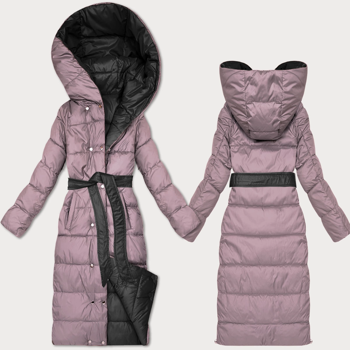 Dwustronna zimowa kurtka z paskiem Minority grafit-różowy (M2-6519-27+52)