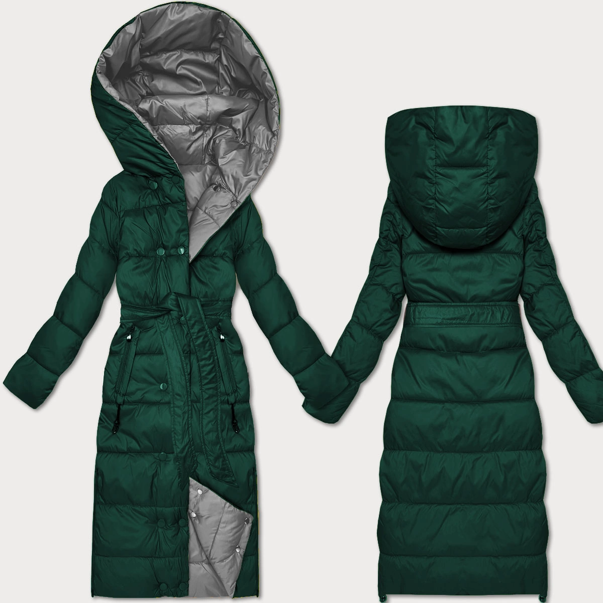 Dwustronna zimowa kurtka z paskiem Minority ciemny zielony-szary (M2-6519-33+61)